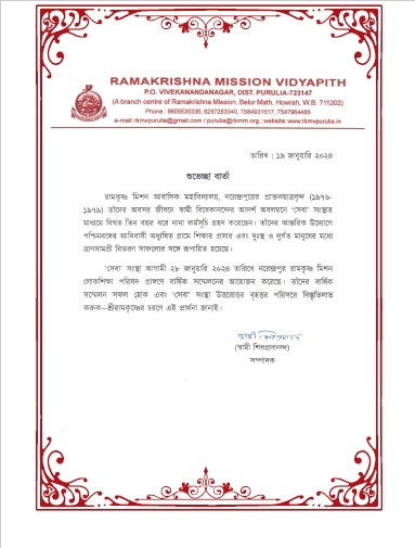 "Inauguration of Tilka Murmu SEVAA Vano Vidyalay (with allied facilities and centers) on 9 th & 10 th March 2025 at Saparambera, Ajodhya Hills, Purulia >> Know More"