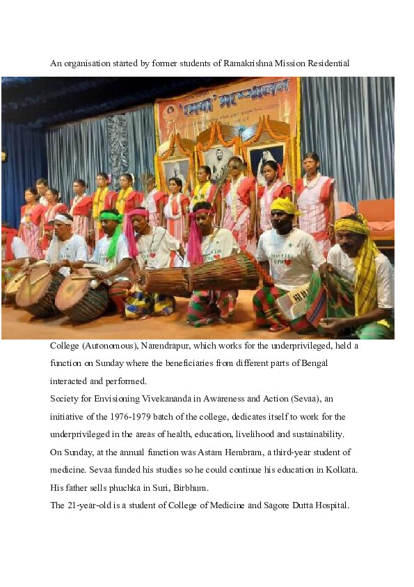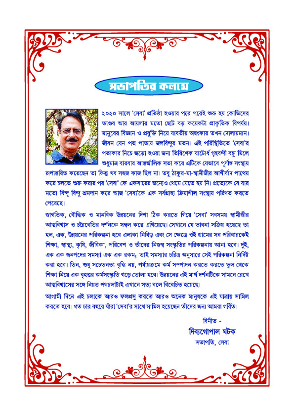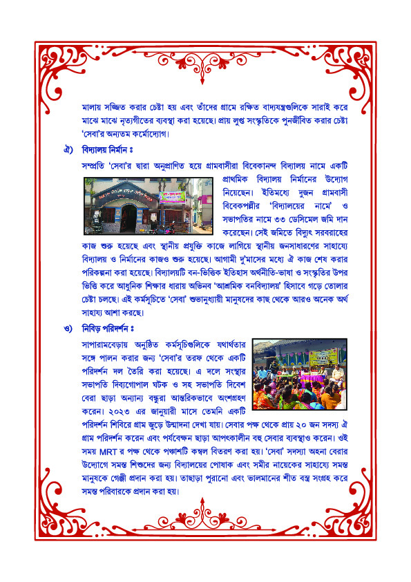 "Inauguration of Tilka Murmu SEVAA Vano Vidyalay (with allied facilities and centers) on 9 th & 10 th March 2025 at Saparambera, Ajodhya Hills, Purulia >> Know More"